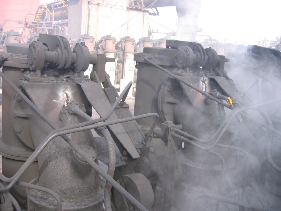 На фотографии показаны выпускные чугунные клапана коксовых батарей. Выпускные клапаны работают в условиях периодического перегрева и воздействия сернистого газа. Трещины были заварены с помощью электродов Castolin 27 (буферный слой) и Castolin 2-44 (заполнение).